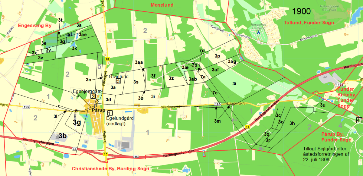 09-03-1898 blev matr.nr. 3g (den østligste af de 3 parceller med navnet 3g) udstykket i matr.nr. 3af og 3ag.