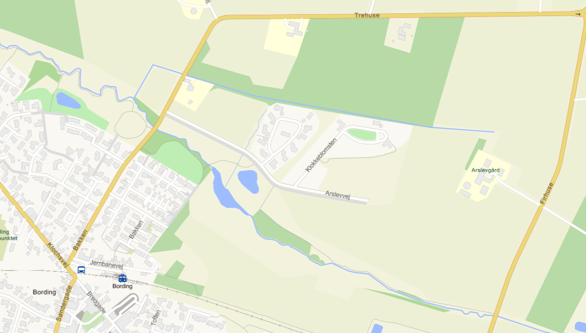 Klokkeblomsten er 2. sidevej på venstre hånd på Arslevvej.