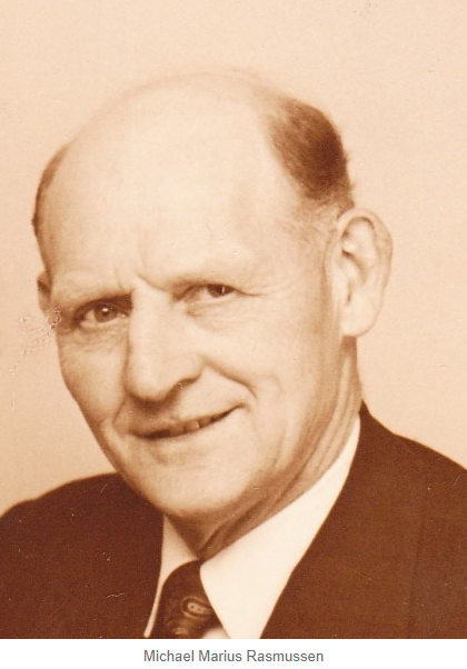 Michael Marius Rasmussen (28-08-1888; ) var søn af "arbejdsmand Laurs Peter Rasmussen og hustru Ane Jakobine Jensen, 28 år," Hasle Sogn, Aarhus Amt.