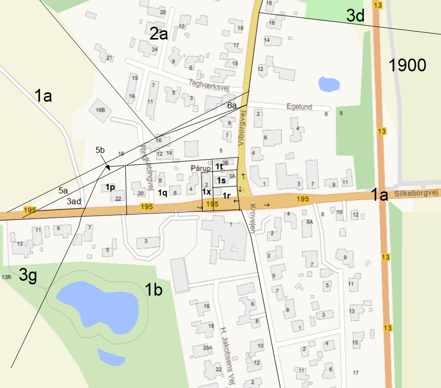 Den 20-02-1895 blev følgende parceller udstykket fra matr.nr. 1a "Egelundgård":