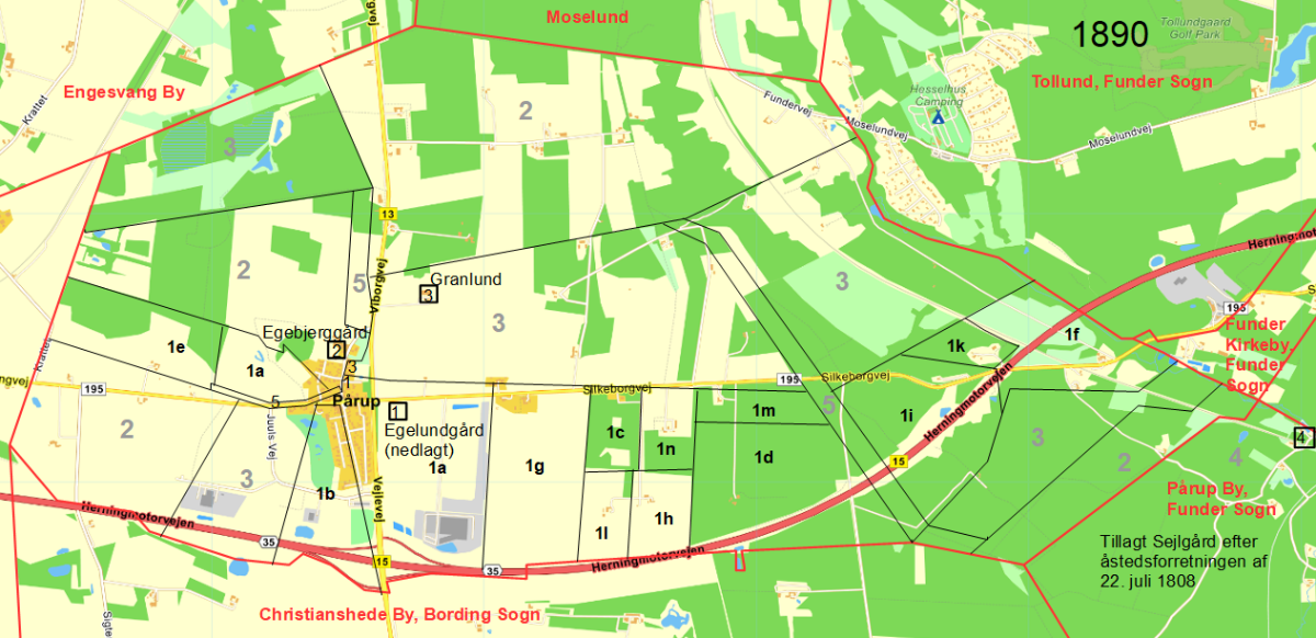 Matr.nr. 1e er en af de vestligste parceller i Ejerlav Pårup By.