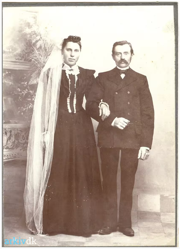Foto: Engesvang Lokalhistoriske Arkiv, bryllupsbillede af Christiane og Daniel Jørgensen, B3601