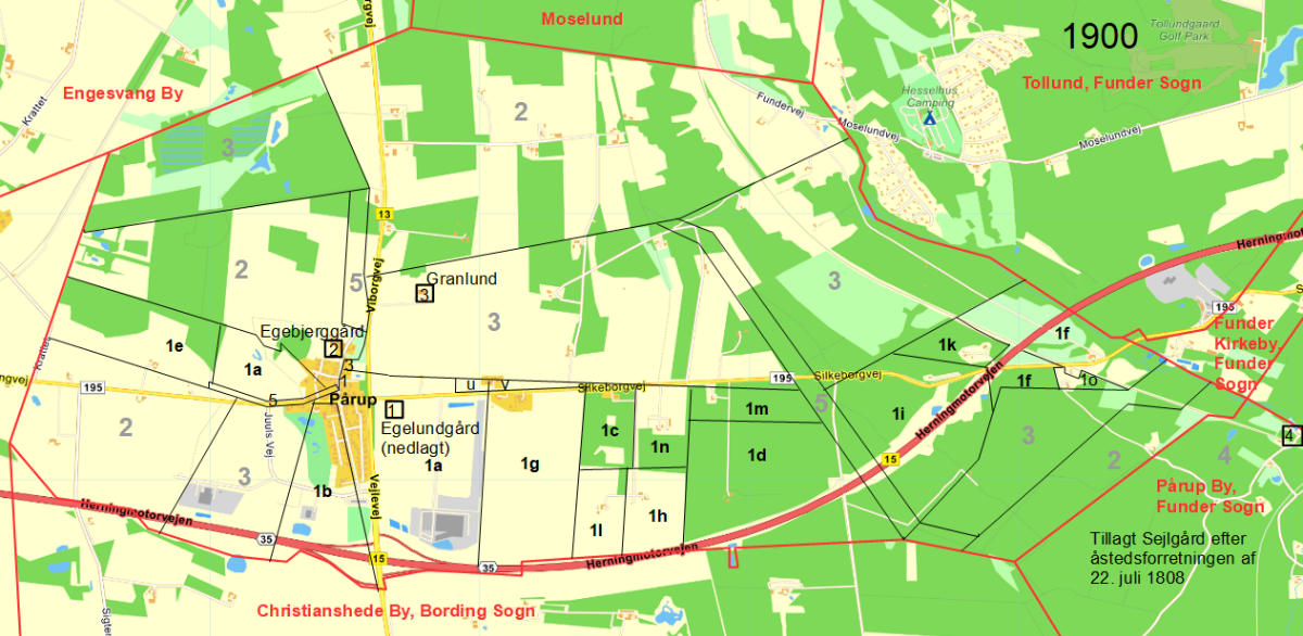 Daværende ejer af "Egelundgård", Niels Peder Nielsen Sejten, solgte 1u og 1v til Daniel Jørgensen den 12-05-1896. Skødet blev først tinglyst den 09-07-1909.