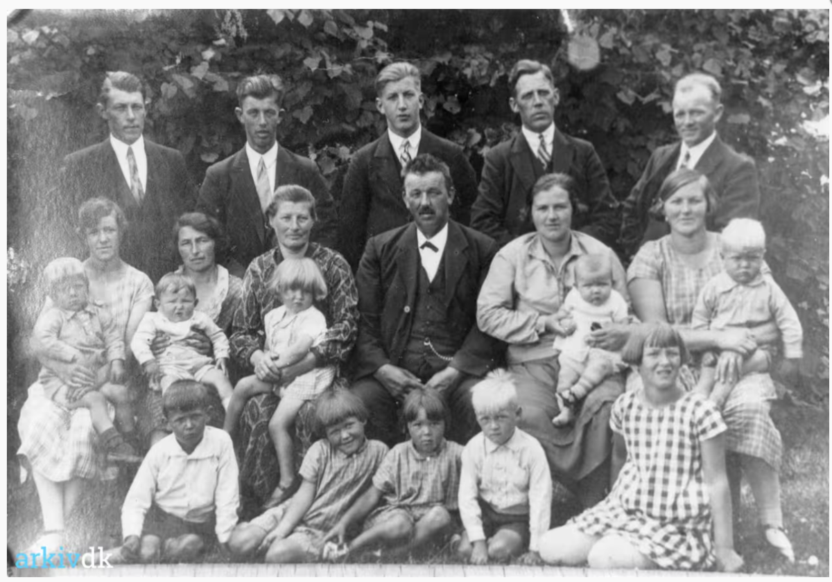 Se også foto fra Engesvang Lokalhistoriske Arkiv af familien ved parrets sølvbryllup.